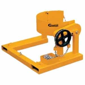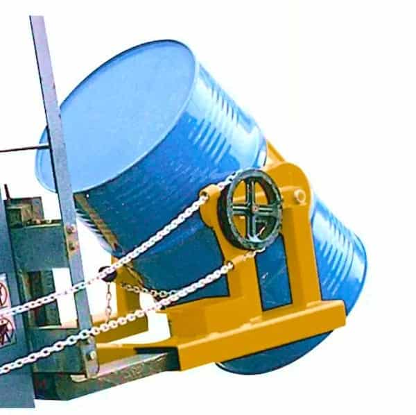 Nagibna hvataljka – adapter za bačve omogućuje rukovanje bačvama pomoću čeonog viličara, uključujući transport, podizanje, slaganje i rotaciju. Opremljena je robusnim reduktorom i ručnim lancem za rotaciju bačve s vozačevog sjedala uz omjer prijenosa 30:1. Pogodna je za bačve promjera 570–600 mm, kapaciteta do 210 litara odnosno 365 kg.