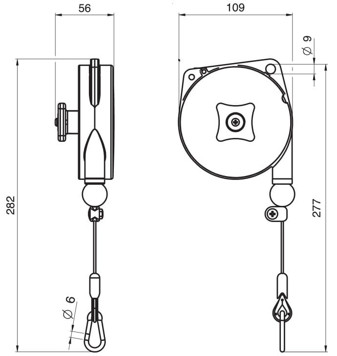 Za razliku od većih balansera, retrakcijski balanser 0,2-3kg je kompaktan i lagan (samo 2.8-3.25kg). Dužina kabela od 1,6 metera čini ga idealnim za male radne stanice i radionice. Lagani balanser lako se montira i demontira sa različitih lokacija bez potrebe za teškom instalacijom.