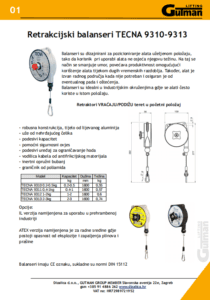 Retrakcijski balanser 0,2-3kg TECNA je specijalizirani industrijski uređaj namenjen fleksibilnoj suspenziji laganих ručnih alata i opreme težine od 0,2 do 3 kilograma sa automatskim povratkom u početnu poziciju. Za razliku od zero gravity balansera koji omogućuju slobodno pozicioniranje, retrakcijski balanser automatski povlači alat prema početnoj poziciji kada ga otpustite. Idealan je za preciznu montažu, elektroniku, light assembly linije, zavarivanje laganim pištoljima i sve primjene gdje trebate brz povratak alata za repetitivne radove.