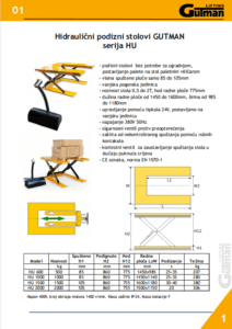 Specifikacije hidrauličnih stolova U profil (HU serije) – niskoprofilni modeli.