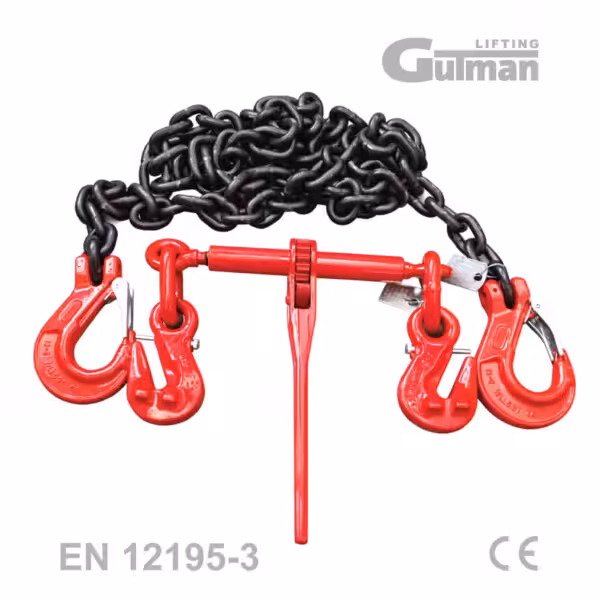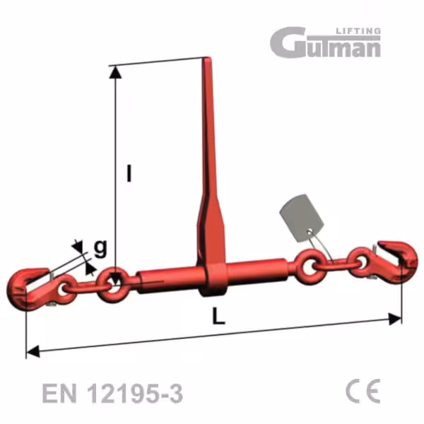 Španer za lanac 13mm konstruiran je za rad u uvjetima gdje su zahtjevi za nosivošću, otpornošću i pouzdanošću na apsolutnom maksimumu. Visokootporni lanac fi 13mm, pojačana račna s dužom polugom od 355mm i kukama-skraćivačima većeg otvora od 19,5mm čine ovaj lančani španer 13mm pravim alatom za teška vozila, industrijsku logistiku i specijalni transport. Svaki zatezač isporučuje se s certifikatom sukladnosti, CE oznakom i metalnom pločicom s utisnuti podacima — obaveznim elementom za profesionalnu i zakonski ispravnu primjenu.