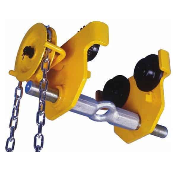 Ovjesna kolica za široke staze s prilagodljivom širinom i pogonom pomoću ručnog lanca opremljena su kotačima prilagođenima različitim profilima staza, izrađena od visokokvalitetnog čelika te opremljena zatvorenim kugličnim ležajevima visoke kvalitete, u skladu s normom EN 13157.