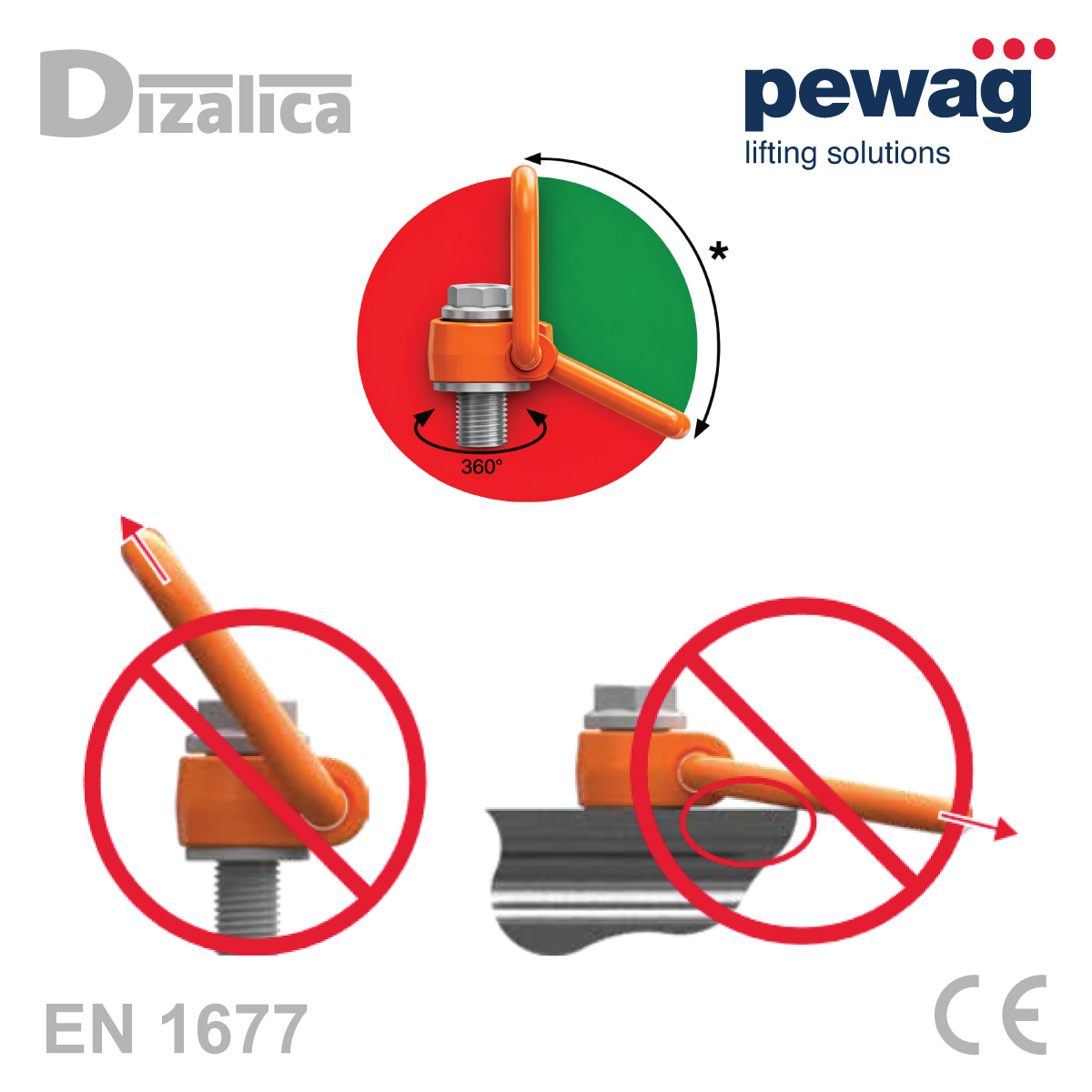 Karika se mora postaviti u smjeru vlačne sile PRIJE samog dizanja. Iako je vijak okretan, strogo je zabranjeno okretati kariku dok je pod punim opterećenjem!Tehničke karakteristike Pewag PLAW alpha