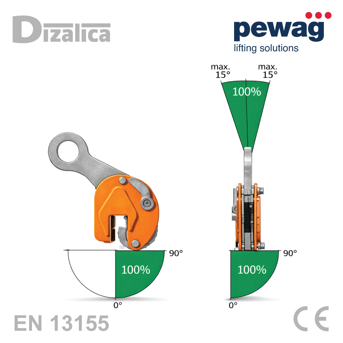 - Bočno podizanje: Hvataljka zadržava 100% radne nosivosti (WLL) pri kutu do 90°.