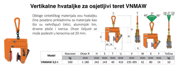 VNMAW model vertikalnih hvataljki dolazi s podesivim mehanizmom u koracima od 20mm, što ga čini fleksibilnijim za različite debljine materijala.