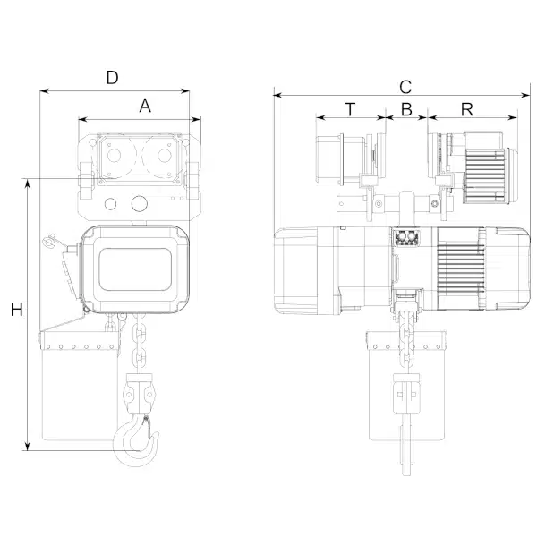Električna lančana dizalica s ovjesnim kolicima nosivosti 2.000 kg namijenjena je zahtjevnim industrijskim primjenama gdje se redovito rukuje teretima od jedne do dvije tone. S motorom od 3 kW i dvostrukim lancem (Φ 10 mm, 2 kraka) ova dizalica pouzdano obrađuje čelične profile, strojne sklopove, motore, generatore i druge teške komponente.