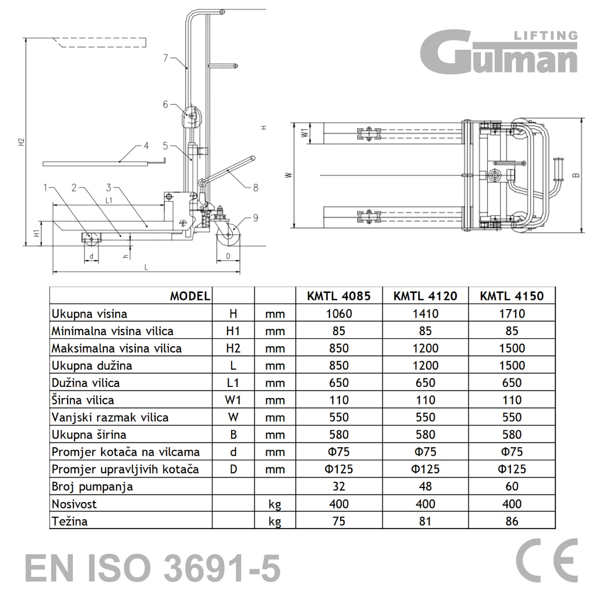 Kada trebate slagati robu “u visinu” u malim skladištima ili trgovinama, model KMTL 4150 nudi najbolji omjer dosega i stabilnosti na tržištu.
