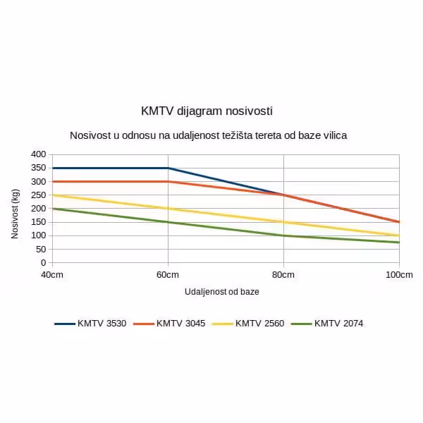| Udaljenost tereta od baze | KMTV 3530 | KMTV 3045 | KMTV 2560 | KMTV 2074 |